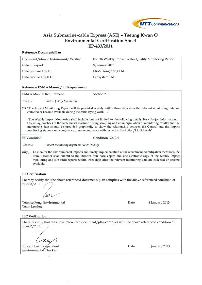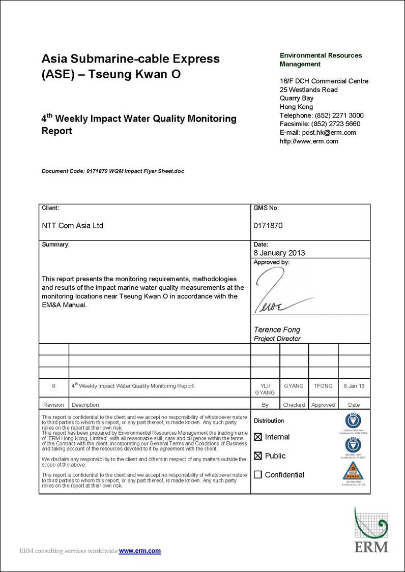 (ERM) was appointed by NTT Com Asia (NTTCA) as the Environmental Team (ET) to