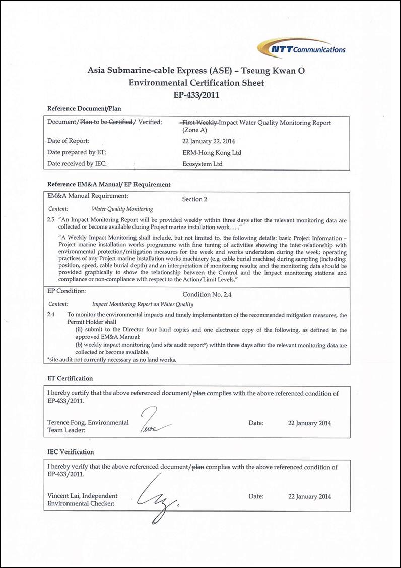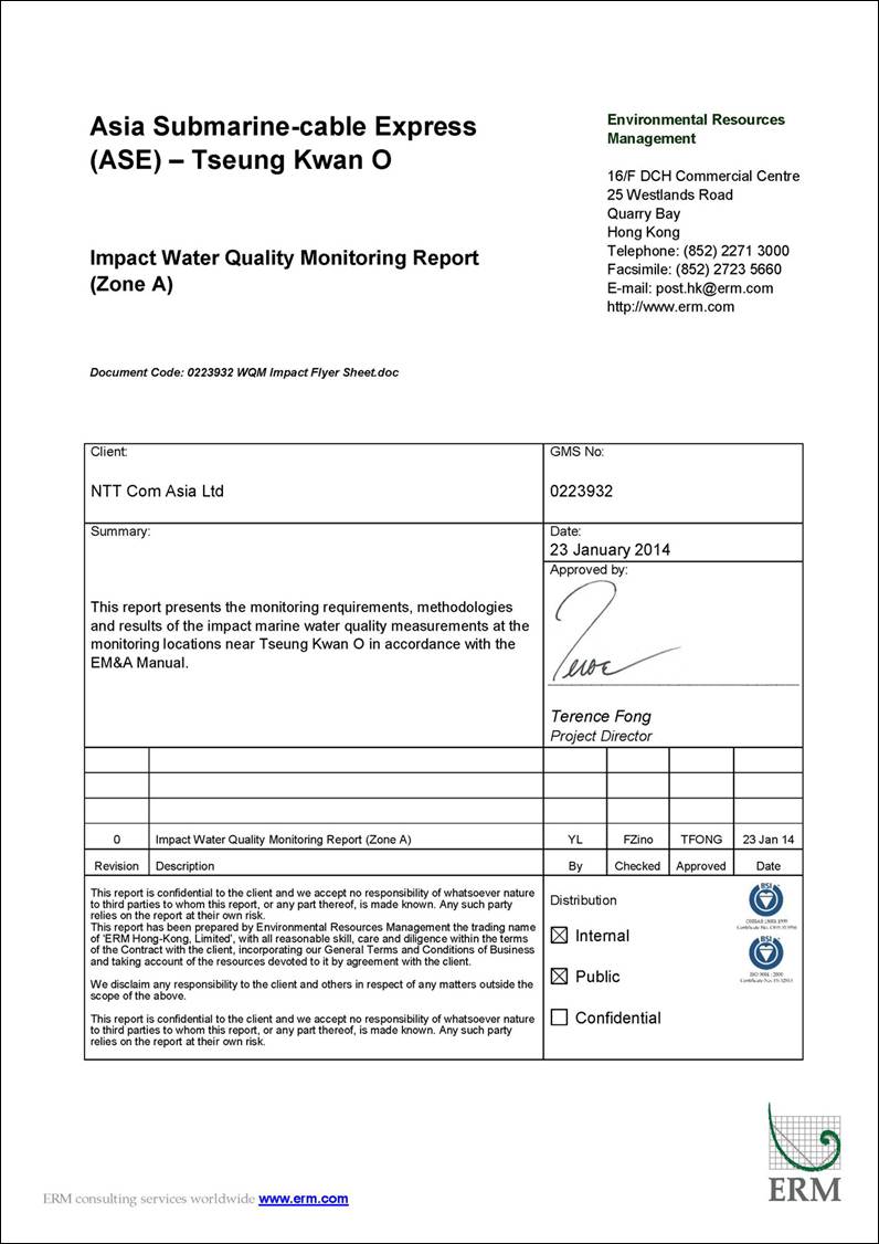 Kong, Limited (ERM) was appointed by NTT Com Asia (NTTCA) as the Environmental Team (ET) to