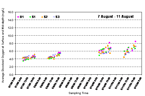 4.1.1                                Exceedances for Dissolved Oxygen from 7 August to 11 August 2009